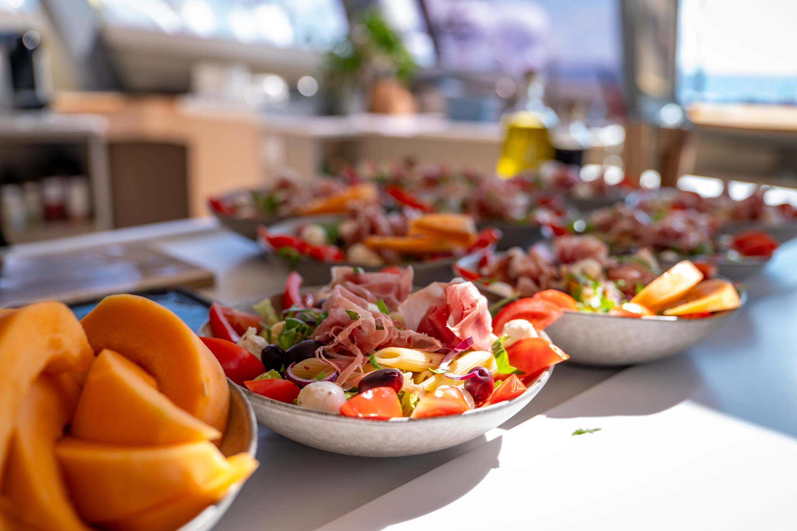 À bord, nous proposons un éventail d’options récréatives, respectueuses de l’environnement, pour améliorer votre expérience, y compris une annexe électrique, des scooters sous-marins, des wingfoils Takuma©, et du matériel de snorkling, le tout à votre disposition pour votre plus grand plaisir.